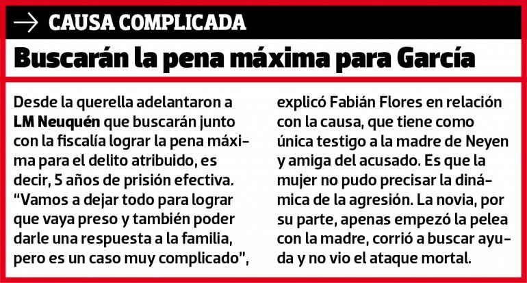 Sin embargo, de acuerdo con la teoría del hecho presentada por la fiscal Eugenia Titanti y el querellante Fabián Flores, por un motivo que no fue precisado, Neyen y su madre comenzaron a discutir, primero fueron agresiones verbales y luego físicas, por lo que el amigo de su mamá intercedió.