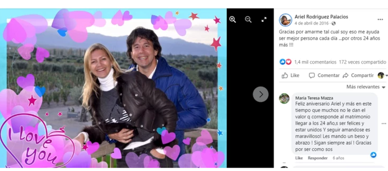 Quién es la esposa de Ariel Rodríguez Palacios y hace cuántos años están juntos