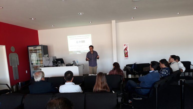 Leonardo Datri, profesor de la UFLO y María Cecilia Navarro, de la Facultad de Ciencias del Ambiente y la Salud (Facias- UNCo), explicaron el estudio y monitoreo del plan de manejo de riesgo aviar, que comenzó en febrero de 2017 y se encuentra en la etapa final.