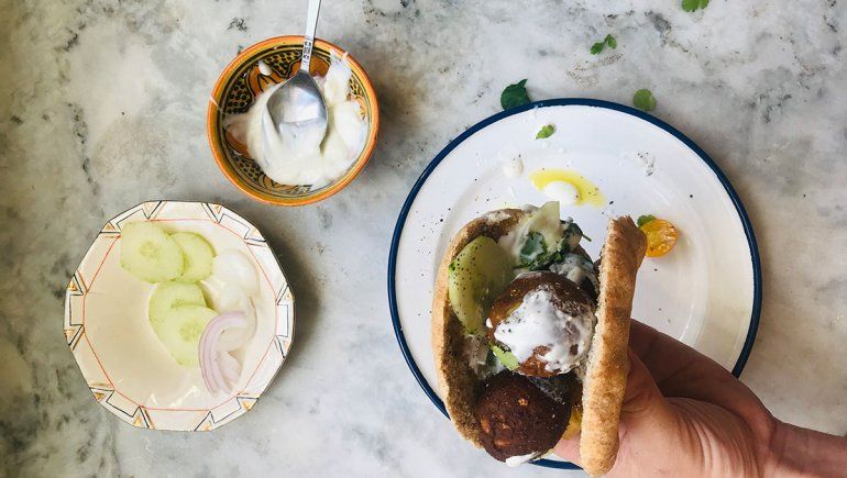 Se puede plantear de diferentes formas. A mi me gusta en pan de pita, con yogurth natural, menta, cilantro, y algún picante.
