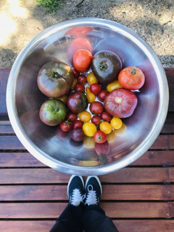 Los tomates que corte, me los dio Sebastián Goodbar se su chacra orgánica llamada Las Parrillas. Sebastián es un gran productor y tiene un buen puesto en el mercado de artesanos del pueblo.