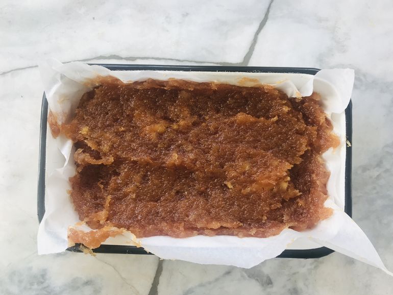 Yo puse en una fuente un papel manteca de fondo y tiré la pulpa. Podes hacerlo con cualquier recipiente.