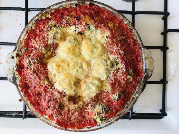Cuando ya los tenes en una fuente elegís la salsa que le podes agregar. Yo le sume un poco de tomate y muuuucho queso (en la base y por encima).