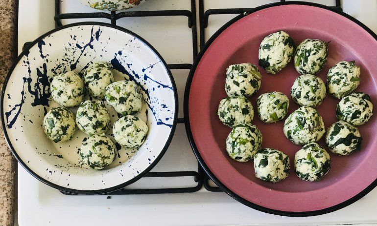 Vamos formando bolitas del tamaño de una pelota de golf (que no sean gigantes porque no se cocinan bien) y no tienen que quedar perfectamente simétricas.