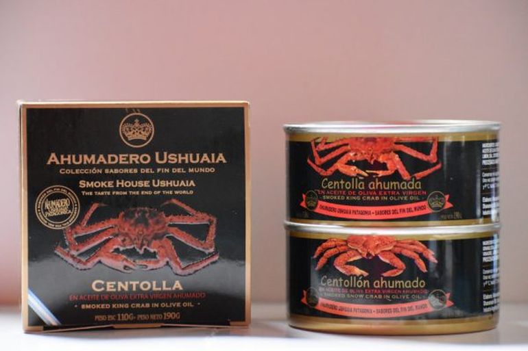 Sin aditivos ni conservantes químicos.Un registro marino en las papilas del gusto, sabor y textura. En Neuquén, la pescadería Puerto Marisco siempre teje un circuito de pequeños productores logrando acercarlos al público del Alto Valle. En su abanico genial de productos se puede conseguir centolla riquísima y lista para consumir. Para darse un gustito de vez en cuando. Al natural en salmuera o ahumada en aceite de oliva. Directamente desde el fondo del mar fueguino, un manjar para picar, sandwichear y comer desde la lata. Producto y sabor. 1 lata $3600