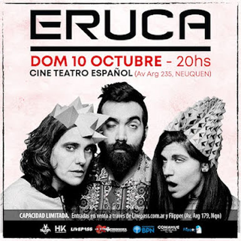 - Eruca Sativa. La banda conformada por Martín Pedernera, Brenda Martin y Lula Bertoldi se subirá a las tablas del Cine Teatro Español este domingo a las 20. Venta de entradas en Flipper y LivePass.