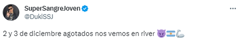 A las 18 del mismo viernes, el cantante anunció en Twitter: "2 y 3 de diciembre agotados nos vemos en River".