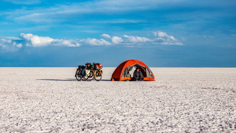 Respecto al cómo combinaron la pedaleada con el equipaje tanto tiempo manifestó: "Salimos con mucha ropa 'por las dudas' y en Salta, donde nos quedamos como diez días, decidimos dejar cuatro alforjas. También regalamos ropa a gente que nos había hospedado, incluidas dos pares de botas de trekking re lindas que no las usamos nunca. Se las dimos a un señor que tenía dos hijas que las necesitaban para ir a una agropecuaria, eran justo los números que usaban ellas. En ese momento, lo material pasó a un segundo plano. Lo más importante era el equipo fotográfico y el lugar para la comida, incluida la de Ona obviamente", recordó.
