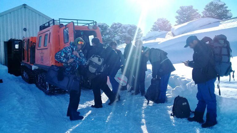 Los efectivos del Grupo de Rescate fueron los encargados de ir en las orugas para transporte de pasajeros Hägglund para llevarlos a Caviahue.