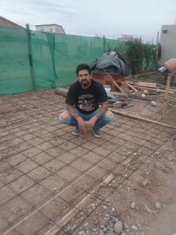 El proceso de reciclado empezó desde la base que mide 4,30 por 4,30 metros. Para construirla el vecino juntó restos de bolsas de cemento de obras de amigos, fue hasta la zona de bardas para sacar algunas piedras e incluso reutilizó pedazos de hierro que encontró tirados.