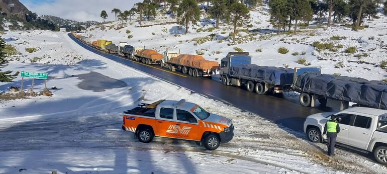 La Ruta 231, en el sector del límite con Chile, se encuentra transitable con extrema precaución. El tránsito sí está prohibido para los camiones, hay sectores con nieve y otros en donde está nevando.