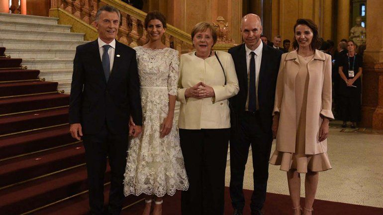 Por su parte, los jefes de Estado se ubicaron en los palcos principales de la sala, conocidos como "palcos balcón", donde Macri se sentó junto a Awada y Merkel.