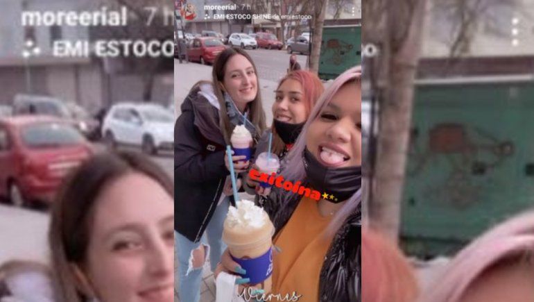En las postales que se viralizaron en las redes, More se mostraba junto con dos amigas -las tres posaron con el barbijo a la altura del cuello- disfrutando de unas bebidas azucaradas frías, mientras que Rocío visitó un establecimiento -cuyo dueño es el cuñado de Romina Pereiro-, la esposa de su padre, y al igual que su hermana, se retrató sin barbijo y sin respetar la distancia con sus amigas.