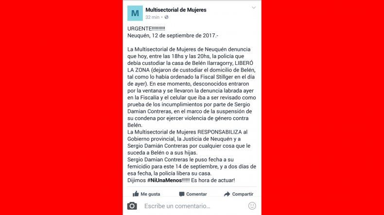 Belén denunció días atrás que su ex pareja, a quien denunció en innumerables ocasiones por golpearla, la amenazó, le dio "40 días de vida". Además dijo que ese plazo "se cumple esta semana".
