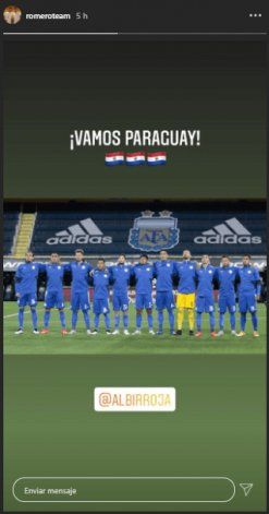 Mientras el Cuerpo Médico argentino sigue trabajando para organizar el proceso de recuperación de Exequiel a raíz de la fractura de apófisis transversas en la columna lumbar que sufrió, Ángel reapareció en las últimas horas a través de un posteo en sus redes sociales.Lanzando una publicación en la cuenta que administra junto a su hermano Óscar, el atacante de Paraguay, a través de la cuenta RomeroTeam, adjuntó una serie de postales donde se lo puede ver celebrando su gol y escribió: "¡Vamos albirroja querida!". Poco tiempo después, la cuenta en cuestión también subió una historia del equipo titular de La Albirroja y redactó: "¡Vamos Paraguay!".