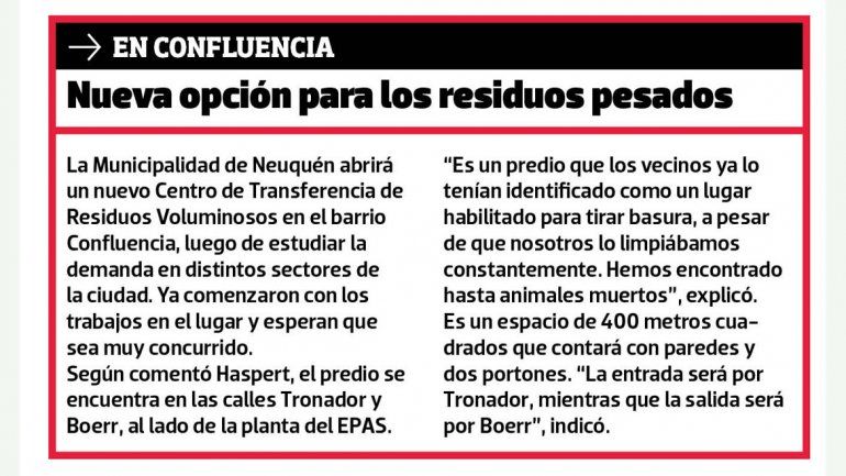 “La verdad es que el barrio nos sorprendió porque nos encontramos con una cantidad de basura que no esperábamos y tuvimos que reforzar el operativo con camiones que estaban destinados al este de la ciudad”, detalló el titular del área de Limpieza Urbana de la Municipalidad de Neuquén, Cristian Haspert.