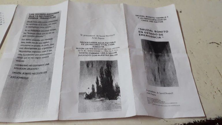 Los vecinos autoconvocados de Sazul Bonito, además de los sismos que se registran en esa comuna que componen alrededor de 90 familias de manera estable, también reclaman por el servicio de agua.