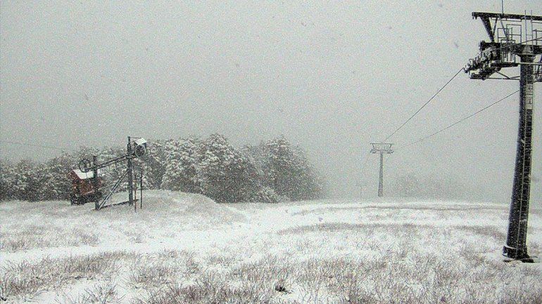 Una importante nevada se registraba esta tarde en el cerro Chapelco, donde está en vigencia un alerta meteorológica por precipitaciones intensas en la zona cordillerana.