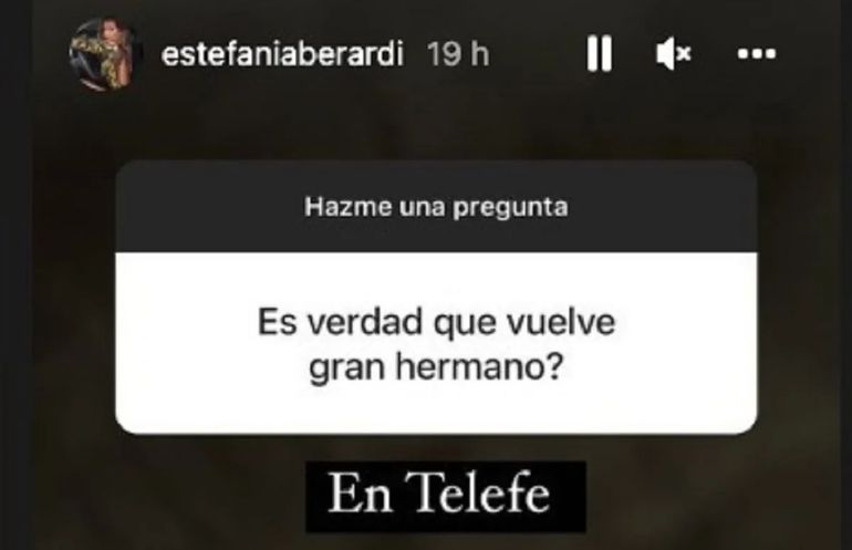 Berardi utilizó su cuenta de Instagram para interactuar con sus seguidores bajo la consigna: "Hazme una pregunta". Uno de los usuarios aprovechó el momento para consultar por el supuesto retorno de Gran Hermano y recibió una sorpresiva respuesta por parte de la mediática: "Telefe". La ex Combate no ofreció ningún otro detalle al respecto.