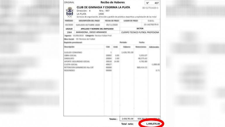 En ese contexto es que la Justicia, mediante la figura de la jueza Luciana Tedesco de Rivero, le solicitó al club platense los documentos oficiales y mediante los recibos de haberes presentados e incorporados en el expediente se supo que Diego cobraba un salario mensual bruto de $2,428,781 (aproximadamente 1.500.000 en mano).