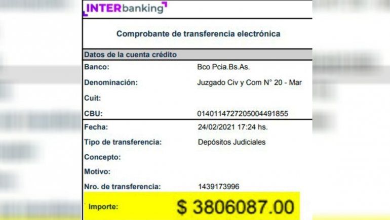 En el documento aparece además la liquidación final que Gimnasia derivo hacia la cuenta del Diez debido a una deuda que mantenía con él y la cifra final que se le transfirió fue de 3.806.087 millones de pesos, los cuales quedaron en el terreno de la sucesión.