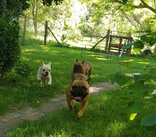 Los perritos, llamados Mimí y Bourbón, son de la raza bulldog francés. La chacra en la que viven está sobre la calle Asunción, al sur de Lima, en la zona semi rural que está detrás del Hostal del Caminante, casi en el límite con Plottier.
