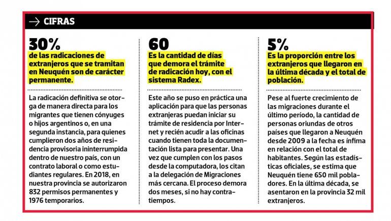 Si se hace la comparación entre jurisdicciones, Neuquén quedó séptima en cantidad de radicaciones de extranjeros en 2018, detrás de Capital Federal, Buenos Aires, Córdoba, Santa Fe, Mendoza y Salta. A nivel nacional, la migración proveniente de Venezuela también es predominante y representa uno de cada tres trámites de residencia.