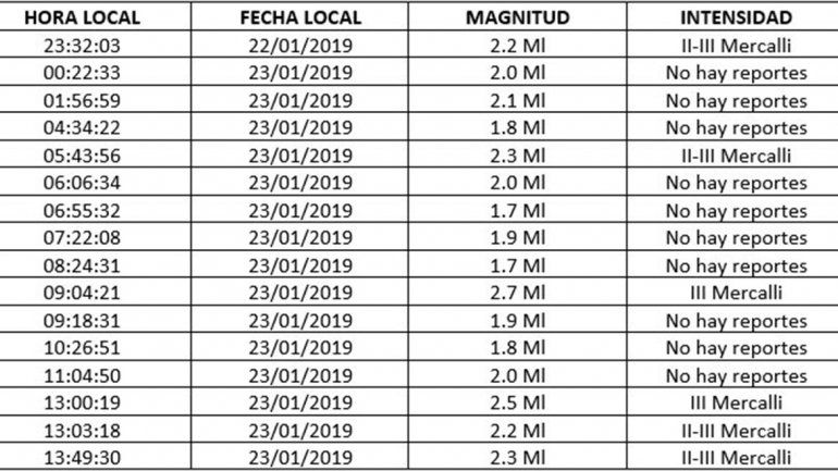 El primer movimiento se registró pasadas las 23.30 del martes, continuaron durante la noche y el último fue percibido pasadas las 15.