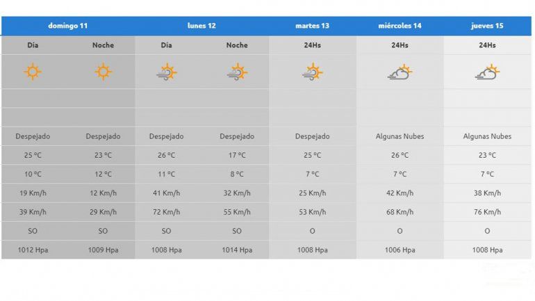 Para el comienzo de la semana los vientos serán protagonistas, con ráfagas de hasta 72 Km/h y registros térmicos 26ºc y 8ºc.