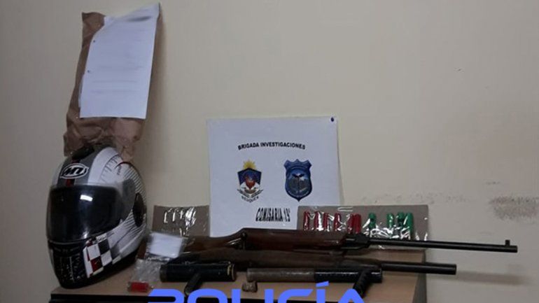 Fuentes policiales indicaron que se incautó una escopeta calibre 16 con caño recortado, cartuchos del mismo calibre, un arma de fabricación casera, cartuchos calibre 12/70, un rifle de aire comprimido, cartuchos calibre 32 y una planta de marihuana de tres metros de altura y otra en proceso de secado.