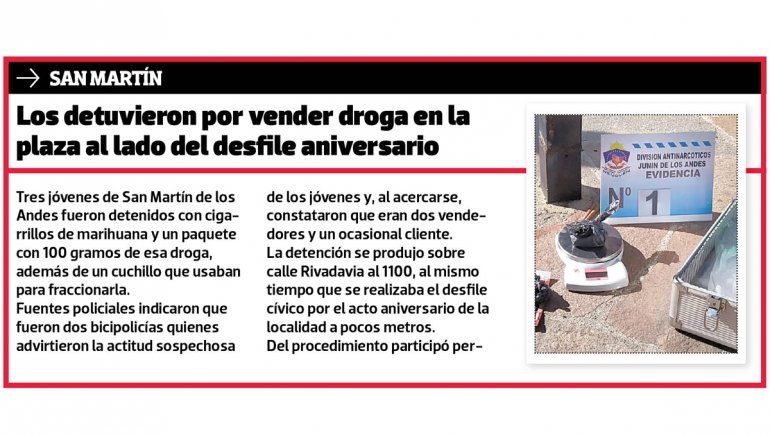 Casi al mismo tiempo, en San Martín de los Andes, bicipolicías detectaron a tres hombres en actitud sospechosa. Eran dos vendedores de cigarrillos de marihuana y un cliente.