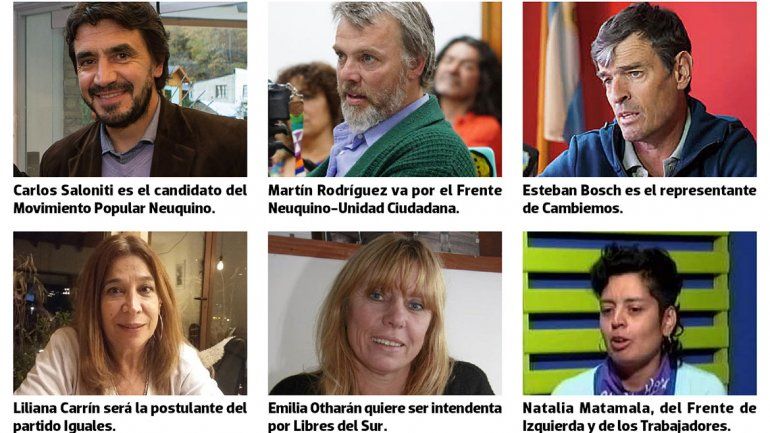 A las candidaturas ya anunciadas en 2018 de Carlos Saloniti por el Movimiento Popular Neuquino, Martín Rodríguez por el Frente Neuquino-Unidad Ciudadana y Esteban Bosch por Cambiemos, se sumaron las de Emilia Otharán de Libres del Sur, Liliana Carrín de Iguales y Natalia Matamala del Frente de Izquierda y de los Trabajadores.