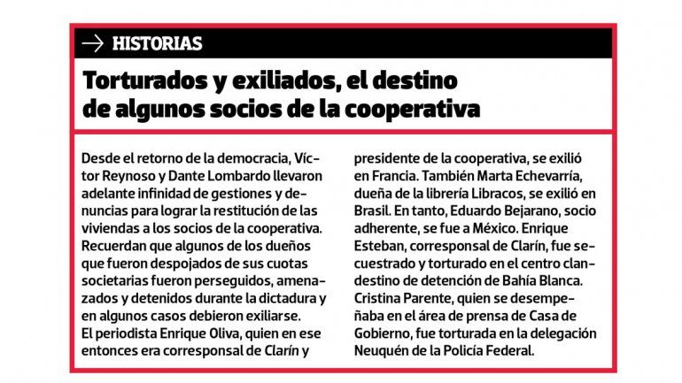 Neuquén.- “El 24 de marzo de 1976 vinieron varios soldados con fusiles FAL, se apostaron en la entrada y en el techo y tomaron el edificio”, recordó Víctor Reynoso sobre la ocupación por parte de las fuerzas armadas de la torre ubicada en Periodistas Neuquinos y Avenida Argentina, cuyas viviendas habían sido destinadas a integrantes de la Cooperativa de Vivienda del Periodista Limitada.