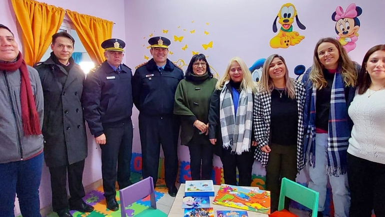 Domínguez, además, hizo entrega de kits maternales y juegos infantiles a la Oficina, para la contención de bebés y niños que también llegan a la comisaría con sus madres.