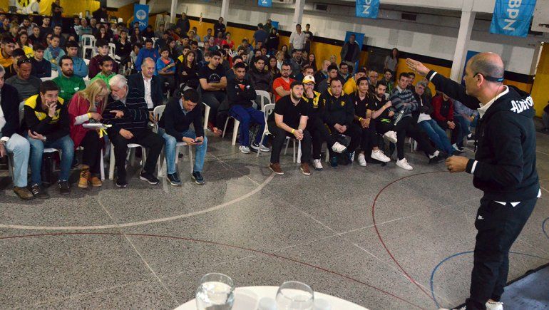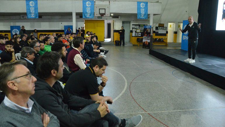 En el encuentro con empresarios y clientes explicó que muchas de las cosas que se aplican para un equipo de básquet sirven para cualquier actividad.
