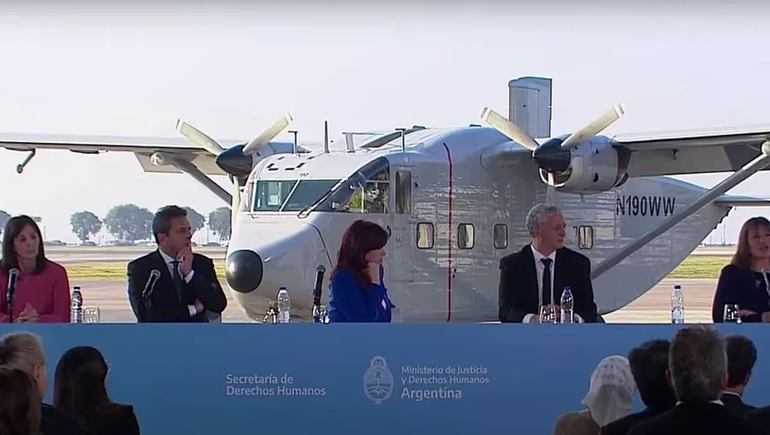 Sergio Massa encabezó este lunes de un acto con Cristina Fernández de Kirchner en la Aeroestación Militar Aeroparque, donde se presentó la recuperación del avión Skyvan PA-51 utilizado para los “vuelos de la muerte”. Fue el primer acto del ministro de Economía como candidato a presidente de la Unión por la Patria junto a la vicepresidenta.