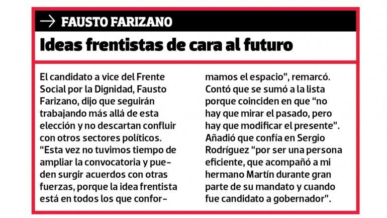 Lo que nos puso en alerta fue el segundo congreso del PJ, donde modificaron la resolución anterior de que cualquier frente lo tenía que encabezar un peronista. El parrillismo puso a Ramón Rioseco para gobernador, que fue candidato nuestro en 2015, luego se arrimó al quiroguismo y en la última elección nacional le ganamos con Darío Martínez; entonces no había razón para que el peronismo fuera furgón de cola. Como siempre fui opositor a (Oscar) Parrilli, los compañeros me empezaron a llamar porque nos cambiaron la postura y me sentí obligado a dar respuesta. En el interín, nos cruzamos con Fausto, disgustado con las posiciones de su partido, la UCR, y vimos que era factible armar un nuevo partido.