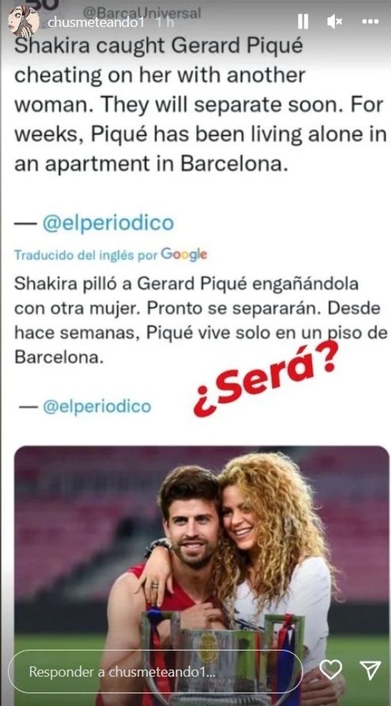 Todo ocurrió cuando los medios españoles se hicieron eco de un posteo de “Mamarazzis”, realizado por las periodistas españolas Lorena Vázquez y Laura Fa, quienes dijeron: “Lo que me comentan a mí, me dicen: Shakira ha pillado a Piqué con otra y se van a separar… me dicen: Eso es así, ha ocurrido, por eso hay distancia”.