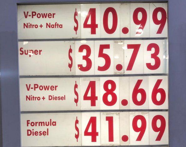 Así el litro de nafta súper se consigue en Neuquén a 35.73 pesos, mientras que la V Power subió hasta los $40.99. En tanto, los productos diesel se venden a 41.99 y 48.66.
