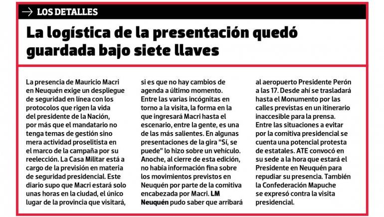 Macri arribará a Neuquén después de encabezar una convocatoria en la misma línea en Tucumán. Ayer, antes de viajar al Jardín de la República, el Presidente convocó a una reunión de gabinete en la Casa Rosada. El Gobierno hizo trascender que Macri le dio un espacio central de la reunión a una serie de presuntas irregularidades sucedidas en las PASO. El ministro de Justicia, Germán Garavano, aclaró que no hubo fraude, sino otras irregularidades, reportaron los acreditados en el Ejecutivo.