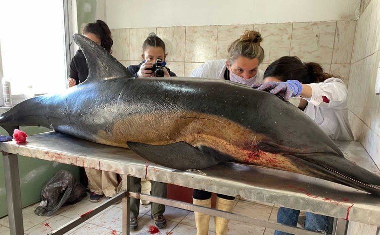 Los cuerpos de los animales fueron trasladados a la Escuela de Ciencias Marinas de la Universidad Nacional del Comahue, donde les efectuaron las necropsias con el fin de recabar información que permita saber más sobre la especie y las posibles causas del deceso.