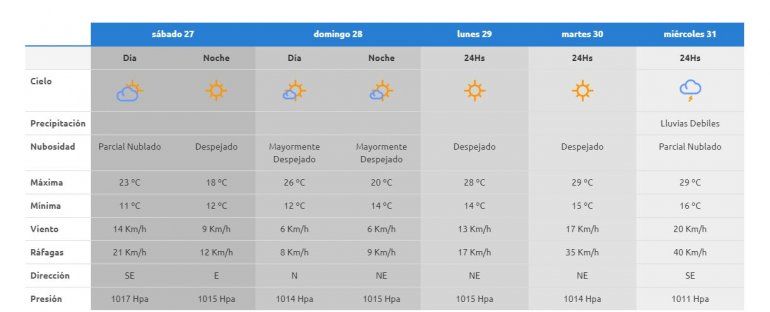 El lunes la semana comienza con buen tiempo, mucho sol y un poco de calor. Asciende la temperatura y el termómetro alcanzará los 28 grados, el martes se mantienen estas condiciones con 29°C de máxima y el miércoles llegan tormentas al Alto Valle.