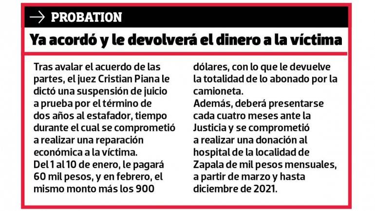 Tal como señaló el fiscal Marcelo Silva, tanto la querella como la defensa arribaron a un acuerdo privado por el cual la acusada reparó económicamente a la mutual en 220 mil pesos, además de otras cláusulas establecidas.