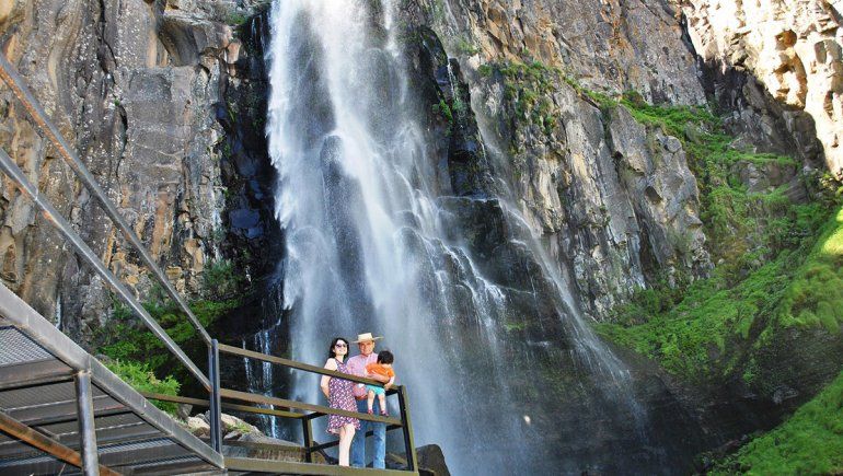 “Me vine a vivir hace un año y un mes a Manzano Amargo, específicamente a Pichi Neuquén. Yo me conocí con el padre de mi hijo jugando al fútbol en los encuentros binacionales que buscan la reapertura del paso Minas-Ñuble, y mi papá nos vino a visitar”, dijo Sofía mientras recorría con su padre Sergio y su hijo el sendero que une la base de la cascada La Fragua con el mirador, donde la cortina de agua inunda todo el paisaje y golpea los rostros otorgando un frescor agradable como compensación de la caminata emprendida para llegar hasta allí.