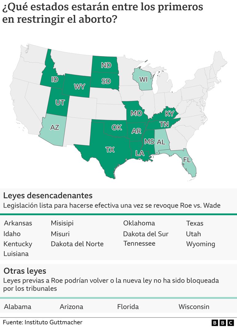 Veintiseis de los 50 estados ya han aprobado o aprobarán leyes que prohíben el aborto, mientras que otros han promulgado medidas estrictas que regulan el procedimiento.