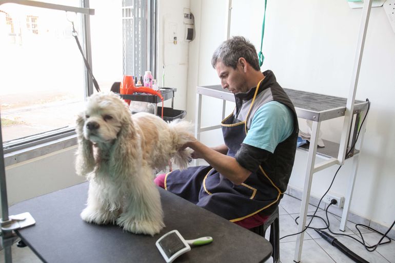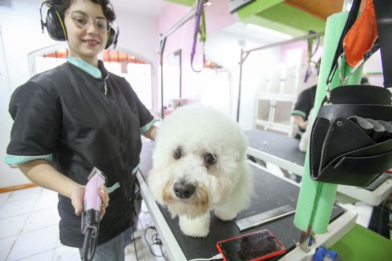 "Si un perro no se deja atender porque no está acostumbrado o porque es miedoso, priorizamos que no se atienda y darle otras posibilidades como que venga varias veces al local, que esté cerca de las máquinas y los ruedos para ver si afloja. Acá se trabaja con seres vivos, hay riesgo para profesional y para el mismo perro por eso insistimos en la periodicidad, para que el perro se mantenga en condiciones y no sea traumático", planteó Aimé de Paraíso Animal.