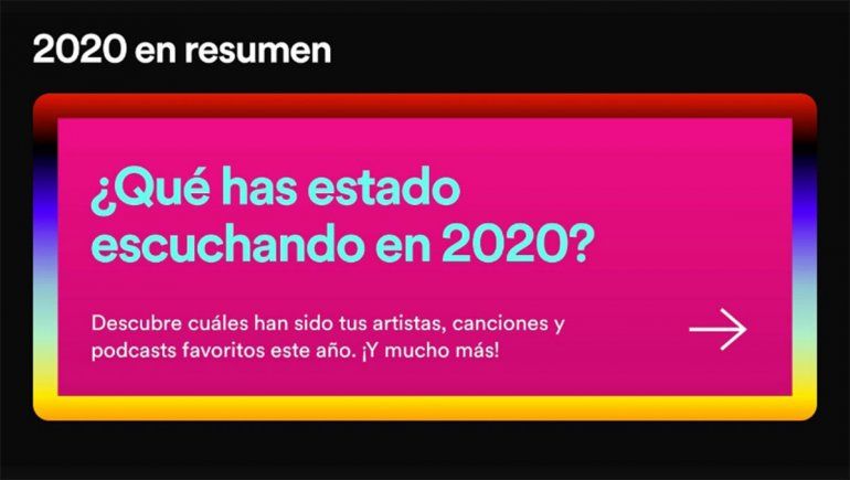 Llega fin de año y Spotify activó el resumen de 2020 a cada usuario. En formato Story, los usuarios pueden ver los temas y artistas que más escucharon en la plataforma; al tiempo que ofrece información añadida, como la música descubierta o la década preferida.