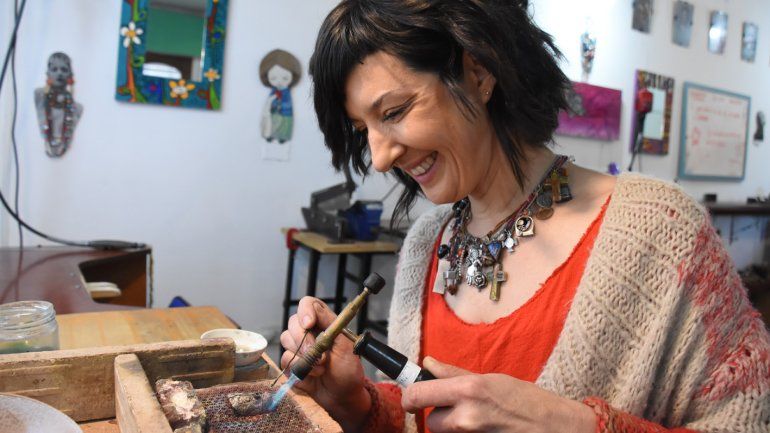 "Yo soy uruguaya y neuquina. Mi familia llegó desde Uruguay exiliada cuando yo tenía tan solo seis meses en 1974. Mi madre se quedó toda la vida acá y mi padre volvió a Uruguay en el 84', así que yo estuve un poco aquí y un poco allá, hasta el 2004 que me radico definitivamente en Neuquén por un tema de salud de mi madre. La vida luego me fue dejando y así terminé montando el taller de joyería que está desde el año 2008", sintetizó.