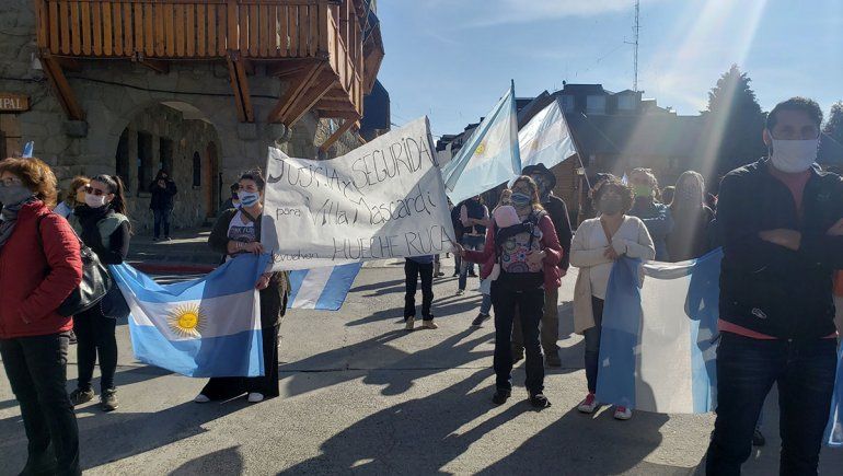 Por la tarde se realizó la segunda movilización de vecinos autoconvocados en defensa de los pobladores de Villa Mascardi que son agredidos de forma continua por integrantes de la Lof Lafken Winkul Mapu. Hace una semana, el grupo intentó trasladarse hasta el territorio tomado aunque la Policía de Río Negro se lo impidió. Esta vez eligieron trasladarse al Centro Cívico bajo la consigna de un "banderazo" para defender la soberanía.