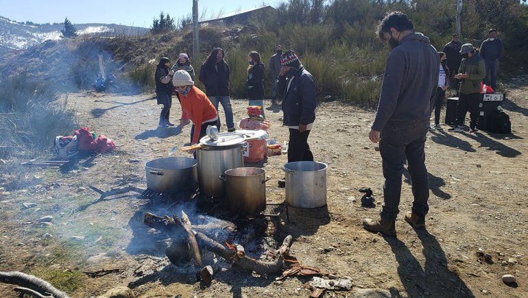 La olla popular se ubicó en el Alto de Bariloche, frente a una toma de tierras que ya fue denunciada a las autoridades. "La gente no puede más, al no poder afrontar sus alquileres, no tienen más opción que ocupar tierras" justificó.
